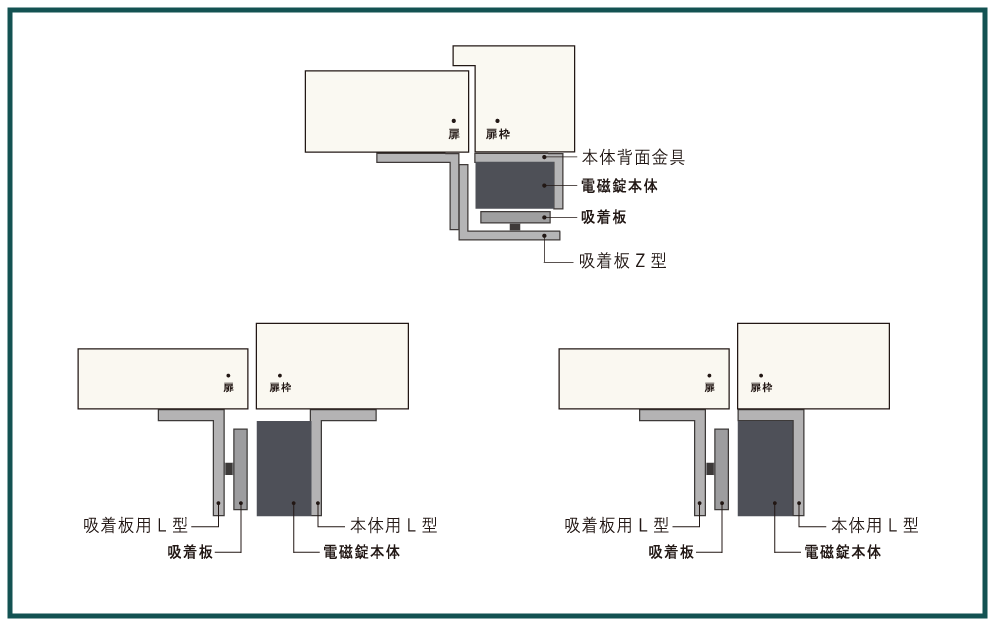 閉扉を感知するセンサー(閉扉信号)と吸着を感知するセンサー(施錠信号)を内蔵しています。